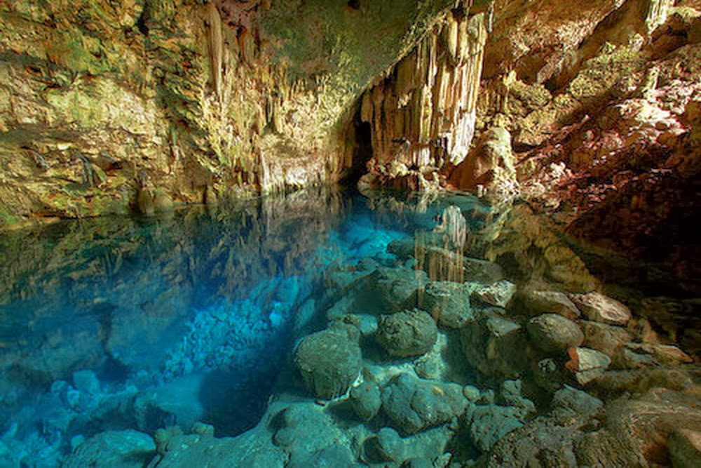 A beautiful cave with an underground spring that has created a natural pool reaching a depth of 22 metres and accessible to snorkelers. Crystal clear, cool water in the pool, as well as a bar, relaxation areas and toilets.